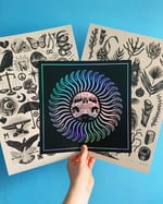 Each one contains 5 randomly selected prints, in a variety of sizes and colours, for the price of 1 (as well as a full sticker set).